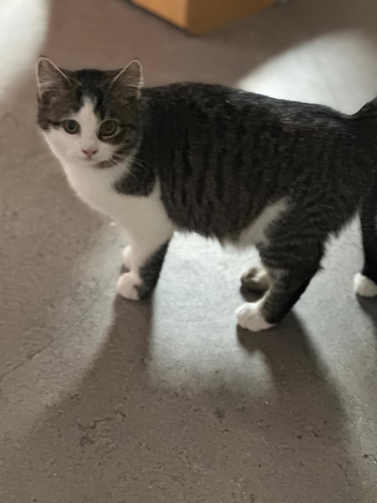 Der liebe, verschmuste Lui wurde, geboren ca. 09/2025, wurde zwischen parkenden Autos gefunden. Auf seiner Pflegestelle ist er zu einem richtigen Schmusekater mutiert.
